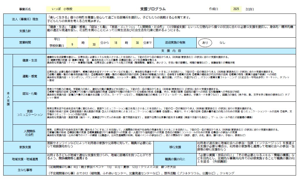 児童発達支援等における支援プログラム【小牧店】